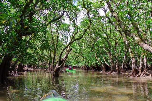 ボートに乗って移動する時は、左右に広がる壮大なマングローブ林に圧倒され、ここはジュラシックパークの世界かと思うくらいの景色に魅了され…